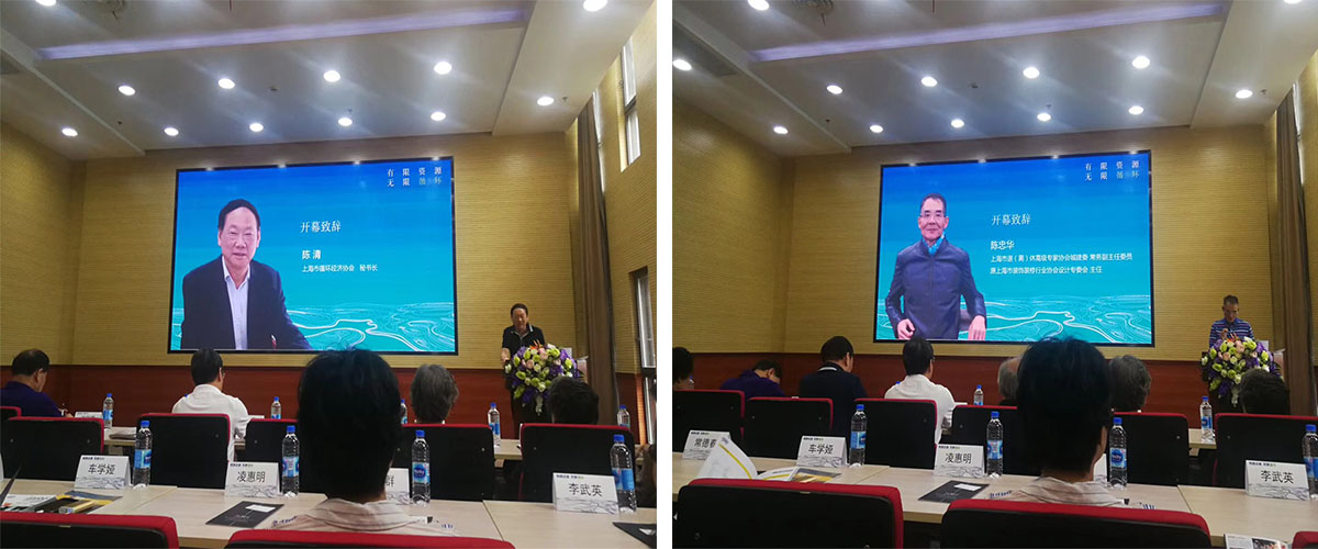 上海市循環(huán)經濟協(xié)會秘書長陳清、原上海市裝飾裝修行業(yè)協(xié)會設計委員會主任陳忠華 上臺開幕致辭。