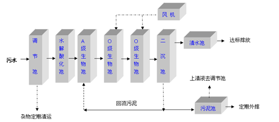 即厭氧—好氧污水處理工藝,流程如下: