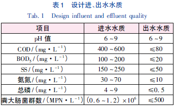 綜合廢水排放量為360 m3/d。設(shè)計(jì)出水水質(zhì)執(zhí)行《生物工程類制藥工業(yè)水污染物排放標(biāo)準(zhǔn)》(GB 21907-2008) 表2 規(guī)定的濃度限值。設(shè)計(jì)進(jìn)、出水水質(zhì)見(jiàn)表1。