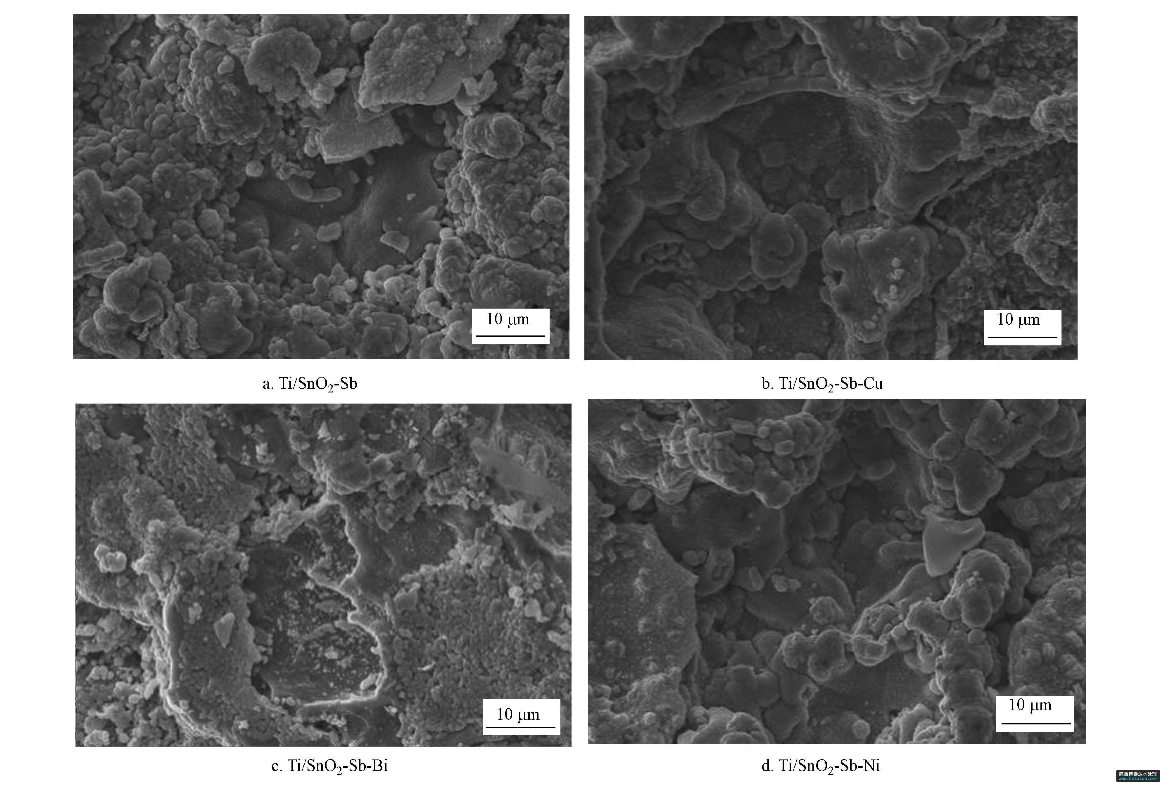 圖1 摻雜不同金屬Ti/SnO2-Sb電極SEM圖
