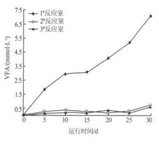 圖 5 各反應(yīng)室 VFA 隨運(yùn)行時(shí)間的變化