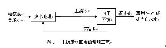 2.1項目承接方對電鍍廢水回用采用的工藝(如圖2)與目前較多電鍍企業(yè)廢水的回用工藝(如圖1)簡單比較: