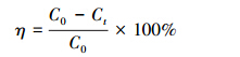 式中,η為MG的去除率;C0為反應(yīng)液中MG的初始濃度(40 mg · L-1);Ct為t min時(shí)反應(yīng)液中MG的濃度(mg · L-1),所有實(shí)驗(yàn)平行3組進(jìn)行.