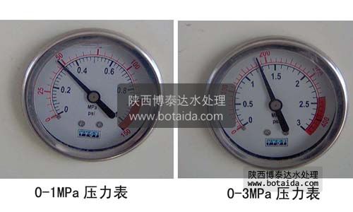 4 、壓力表:測量系統(tǒng)進水壓力、段間壓力、濃水壓力、產(chǎn)水壓力。