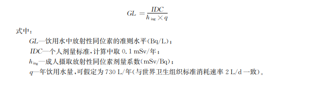 飲用水中放射性同位素的準(zhǔn)則水平由下式計算確定: