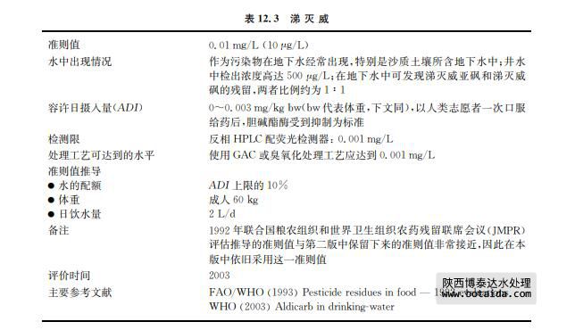 涕滅威 (CASNo,116 06 3)是一種用于控制土壤中線蟲(chóng)類和許多影響農(nóng)作物的昆 蟲(chóng)和螨蟲(chóng)類的內(nèi)吸性農(nóng)藥(見(jiàn)表12.3)。涕滅威極易溶于水,在土壤中遷移性大。降解主要 通過(guò)生物降解和水解,但這樣的降解方式需持續(xù)幾周或幾個(gè)月。