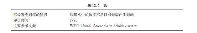 氨包括非離子化(NH3)和離子化(NH+ 4 )兩種形態(tài)。環(huán)境中的氨來自新陳代謝、農業(yè)和 工業(yè)的加工處理過程和氯胺消毒過程。在地下水和地表水中氨的背景濃度常低于 0.2mg/L。不過,厭氧條件下的地下水含有的氨可高達3mg/L。密集飼養(yǎng)動物會大幅度增 加地表水中的氨。氨的污染也可能來自水泥灰漿管道的襯里析出。水中的氨是水可能受細 菌、污水和動物排泄物污染的指示指標(見表12.6)。