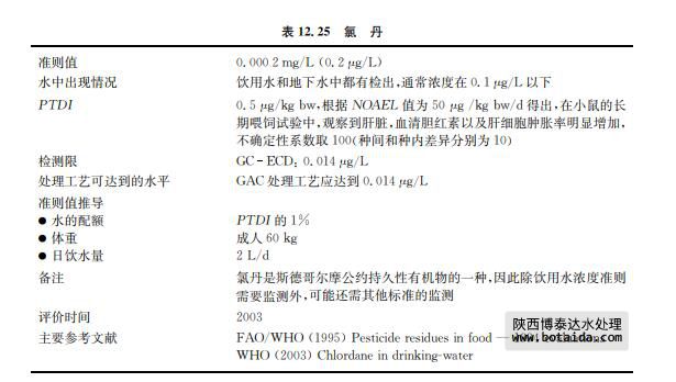 氯丹(CASNo.57 47 9)自1947年開始使用,是一種廣譜殺蟲劑(見表12.25)。目 前,許多國家已經(jīng)開始嚴(yán)格限制氯丹的使用,現(xiàn)僅通過液下噴射的方式用于殺除土壤中的白 蟻。經(jīng)液下噴射使用時,氯丹會成為地下水污染的潛在污染源,但濃度較低。氯丹工業(yè)品是 混合物,主要由順式和反式氯丹組成。氯丹不易自然降解,在土壤中不易遷移也不易進(jìn)入地 下水(僅少量檢出)。氯胺易散失進(jìn)入大氣。雖然食物中所含氯胺的濃度水平一直在降低, 但氯胺具有持久性和較強(qiáng)的生物累積可能。