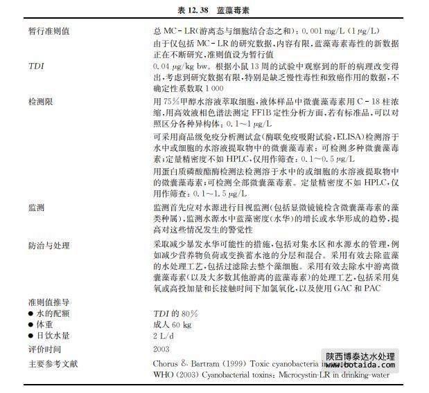 監(jiān)測藻毒素是監(jiān)管原水藍(lán)藻暴發(fā)或水華形成其他潛在可能證據(jù)(即營養(yǎng)水平和浮游植 物物種組成)的最有效方式,可預(yù)警此類事件的發(fā)生。相比之下,監(jiān)測出廠水目標(biāo)藻毒素濃 度不足以判斷水質(zhì)是否安全,因?yàn)榇罅康亩舅兀ㄌ貏e是微囊藻毒素)除了 MC LR有準(zhǔn)則值 外,其余均沒有準(zhǔn)則水平。但微囊藻毒素的分析可以用來驗(yàn)證和優(yōu)化諸如河岸天然慢濾等 處理工藝的處理效果。盡管取得細(xì)胞提取液較為簡單,藻毒素分析需要特別注意細(xì)胞的提 取過程,忽略從細(xì)胞中的萃取過程將會導(dǎo)致計(jì)算濃度偏低。