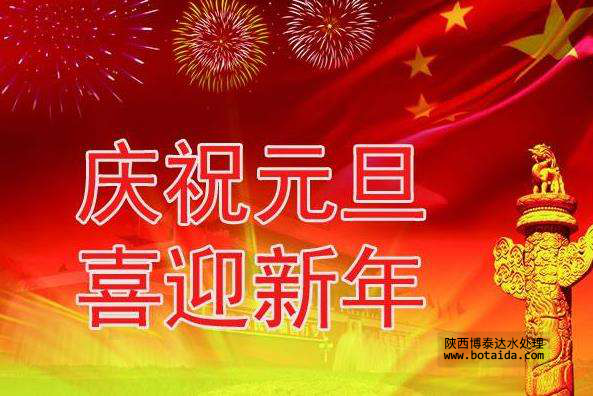 在此元旦來(lái)臨之前,陜西博泰達(dá)水處理科技有限公司祝愿各位新老客戶,新老朋友及全國(guó)的人民:闔家歡樂(lè),萬(wàn)事順達(dá),新起點(diǎn)新氣象!