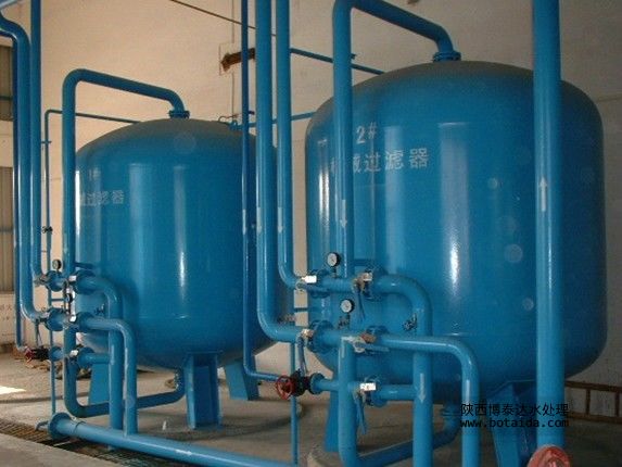 機械過濾器是根據(jù)系統(tǒng)總進水量來選擇過濾器的大小以及組合方式的(一臺機械過濾器不夠可選擇多個并聯(lián)使用以及備用的數(shù)量),機械過濾器內(nèi)的填料是由許多不同粒徑的精制石英砂嚴(yán)格按從大到小的次序配置而成,因而形成良好的石英砂級配。
